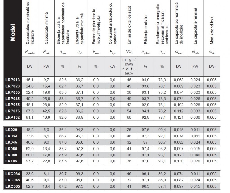 Puterea termica nominala a generatoarelor variaza de la 5 la 97 kW.