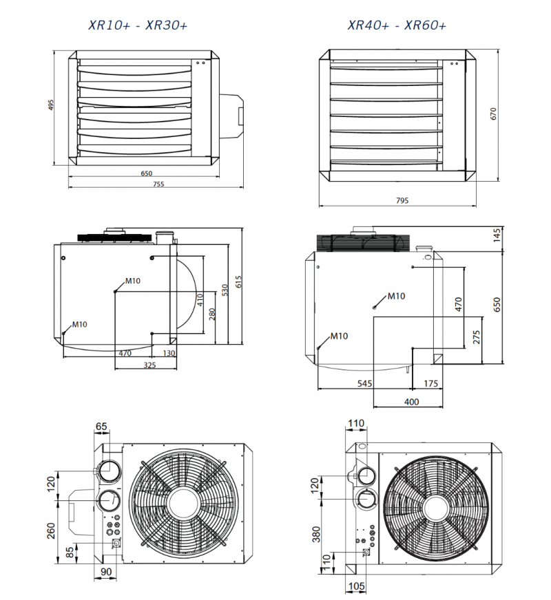 Dimensiuni aeroterma pe gaz WINTERWARM - XR+