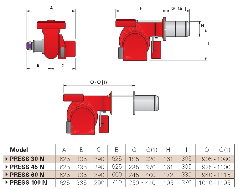 Dimensiuni Arzator CLU sau pacura Riello PRESS 100 N