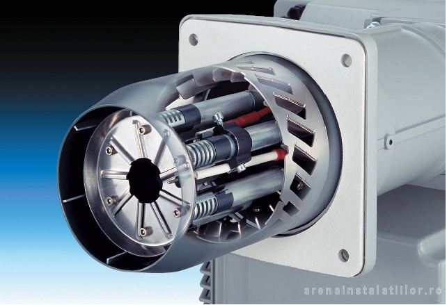 | - Presostat presiune aer, cu selector gradat, pentru a asigura blocarea arzatorului in cazul unei insuficiente a alimentarii cu aer - Filtru de protectie impotriva interferentelor radio - clapeta de aer, cu reglare manuala sau automata - motor electric monofazat 220V, 50 Hz - ventilator centrifugal - carcasa de protectie cu proprietati fonoabsorbante - cap de combustie prevazut cu: - tun in forma de con din otel inox, erzistent la temperaturi ridicate - electrozi de aprindere - electrod de ionizare - distribuitor de gaz - disc pentru stabilizarea flacarii - fereastra pentru inspectarea flacarii - Nivel de protectie electric IP40 |