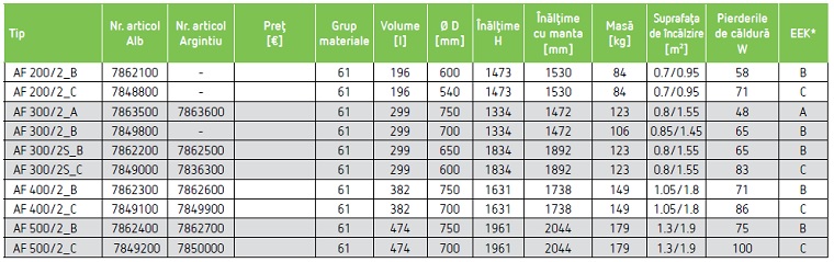 Date tehnice Boilere cu o serpentina Reflex Storatherm Aqua Solar AF