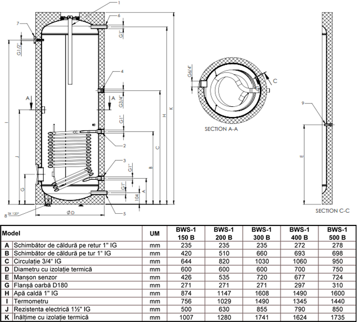 Boiler cu o serpentina Austria Email BWS-1 150 B - 150 litri caracteristici tehnice: