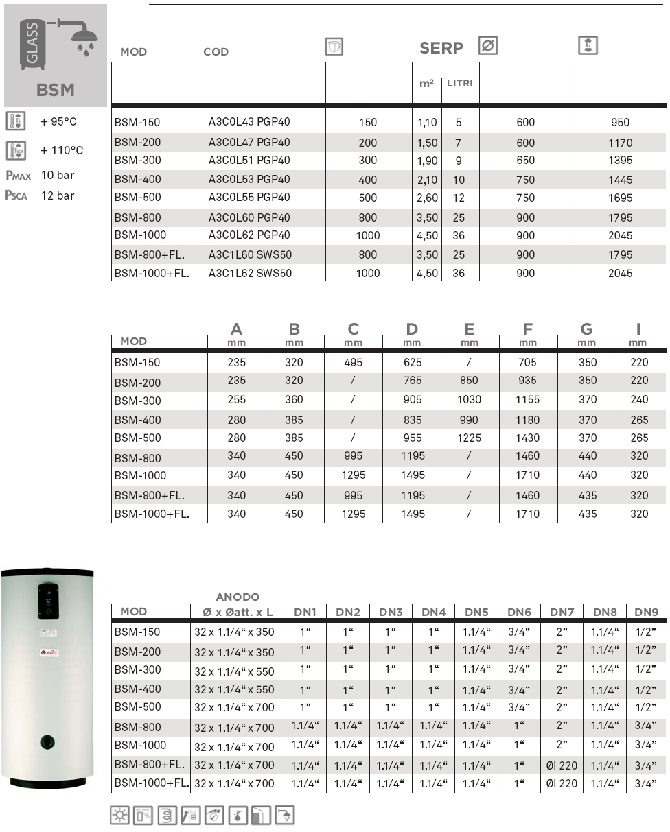 Boilerele din seria BSM sunt boilere cu eficienta ridicata, verticale, cu serpentina fixa. Se recomanda a fi montate in instalatiile rezidentiale.