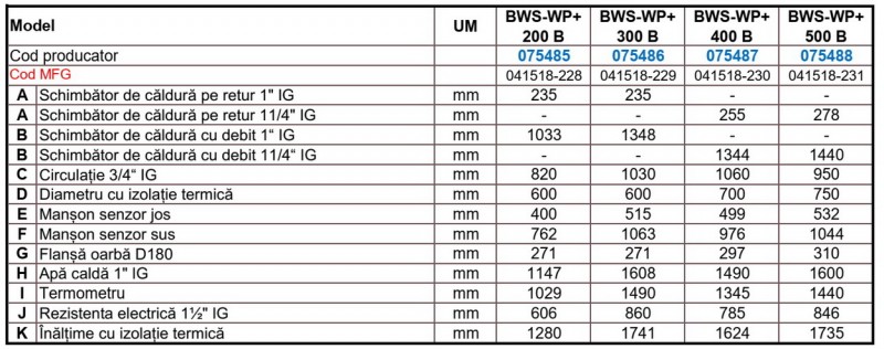 Boiler cu o serpentina marita ( 2.44 mp ) pentru pompe de caldura AUSTRIA EMAIL BWS-WP+ 200 B - 200 litri