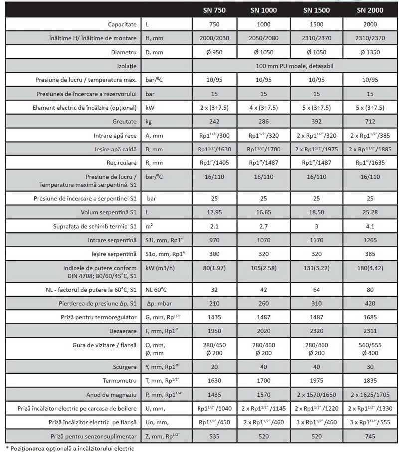 Boiler cu o serpentina Sunsystem SN - DIMENSIUNI SI DATE TEHNICE