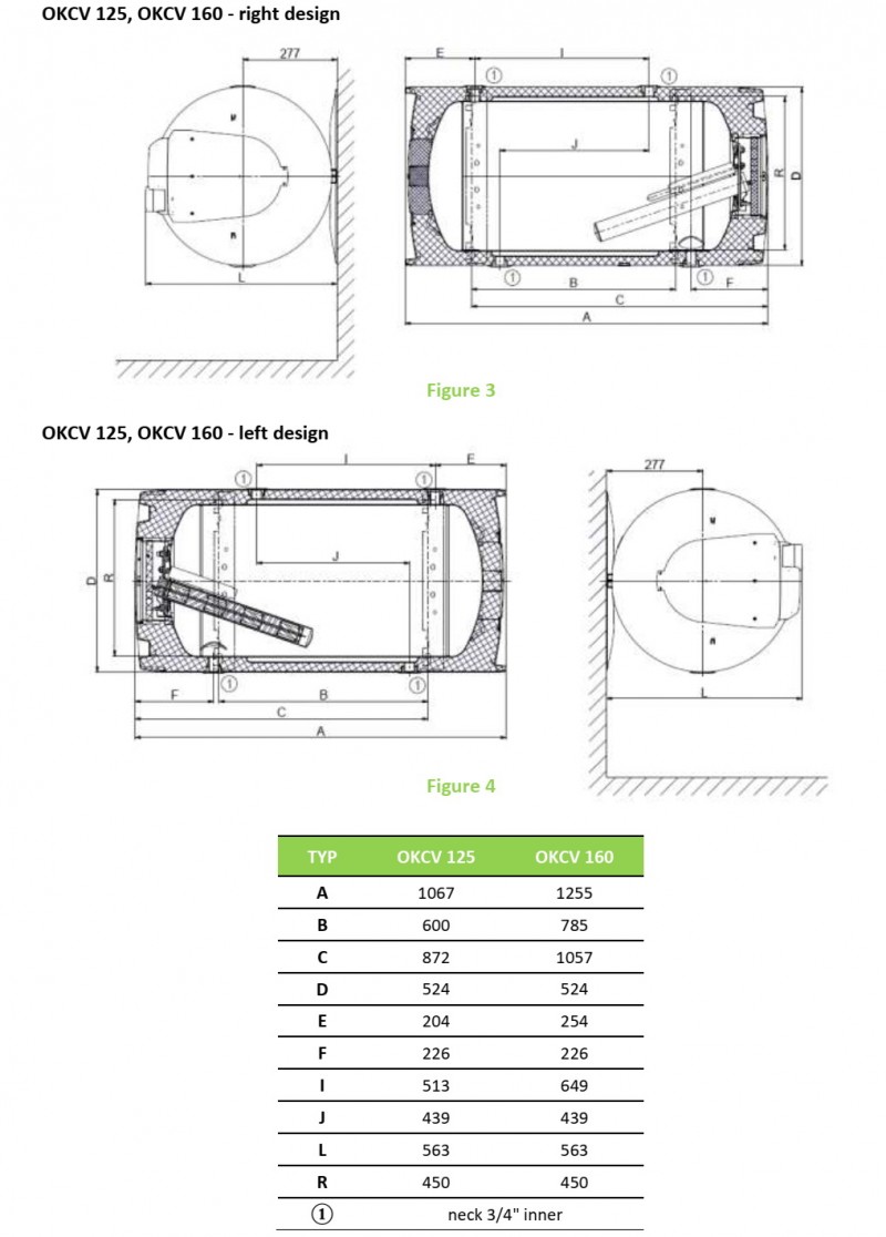 - Echipamente la cerere: intrare de circulatie, element de 4 kW (numai pentru OKCV 200)