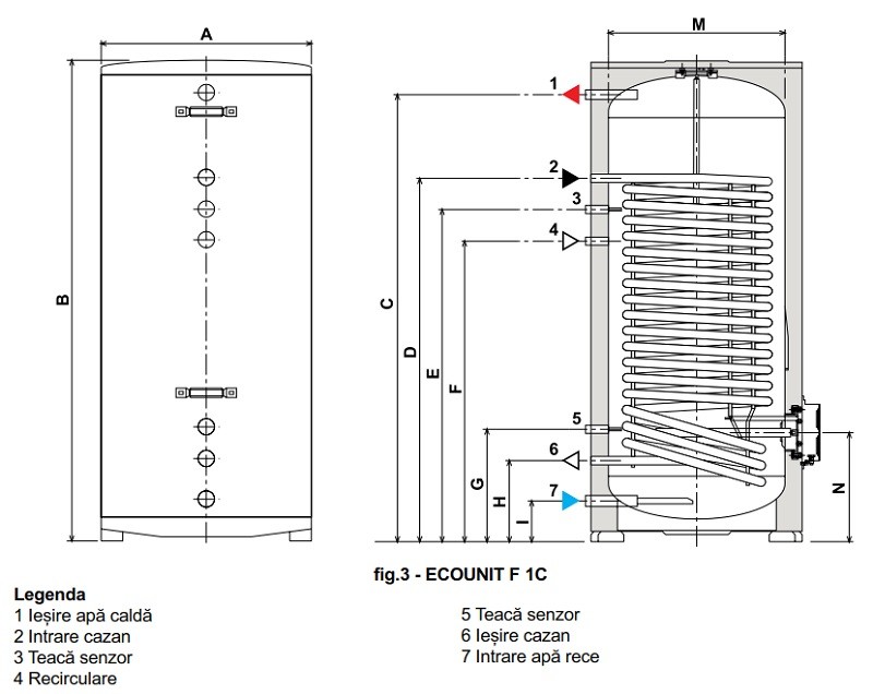 Boiler cu o serpentina Ferroli ECOUNIT F - dimensiuni