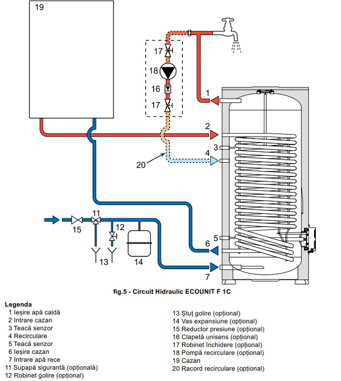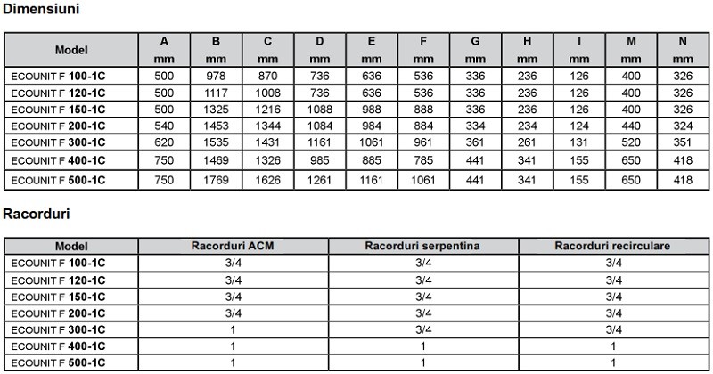 - Modelul Ecounit F 1C este echipat cu o singura serpentina extinsa pentru productia de a.c.m.