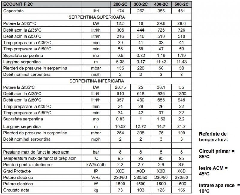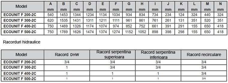 Modelul Ecounit F 2 C este echipat cu 2 serpentine oferind posibilitatea de conectare la mai multe surse de incalzire.