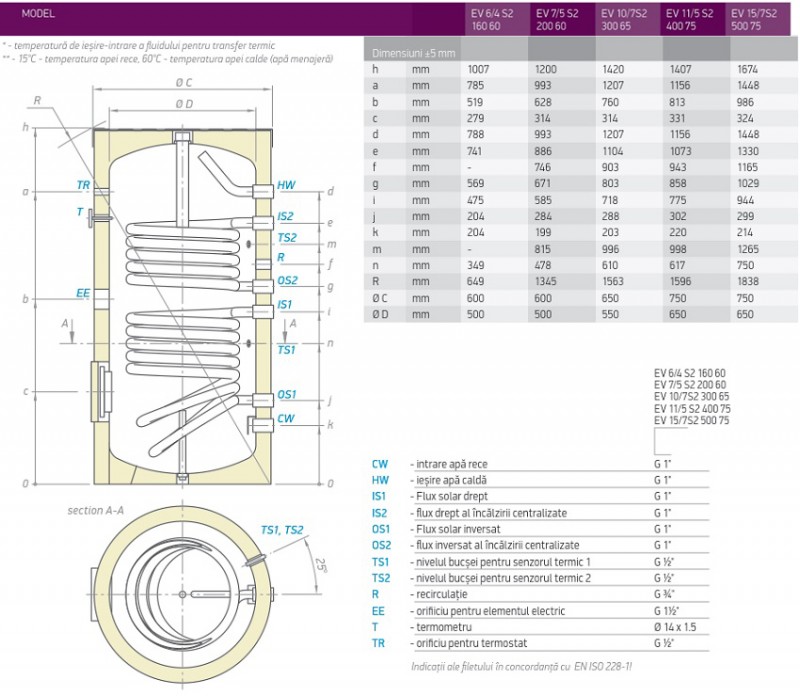 Date tehnice Boiler solar cu 2 serpentine WOODY BG
