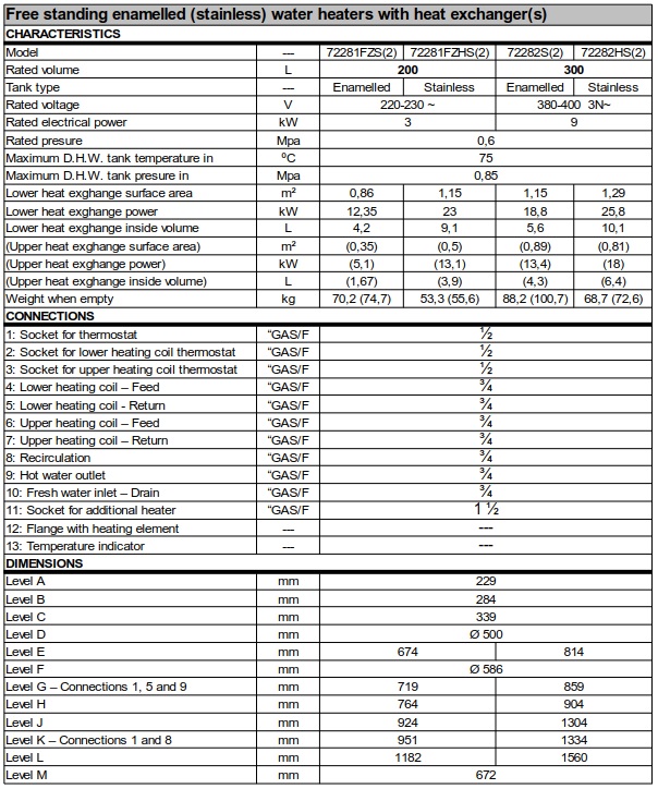 Boiler termoelectric cu 2 serpentine ELDOM 200 litri 3 kW - date tehnice