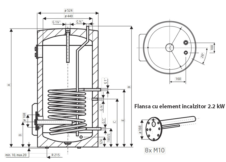 Caracteristici tehnice boiler termoelectric de sol DRAZICE OKCE 113 NTR / 2.2 kW