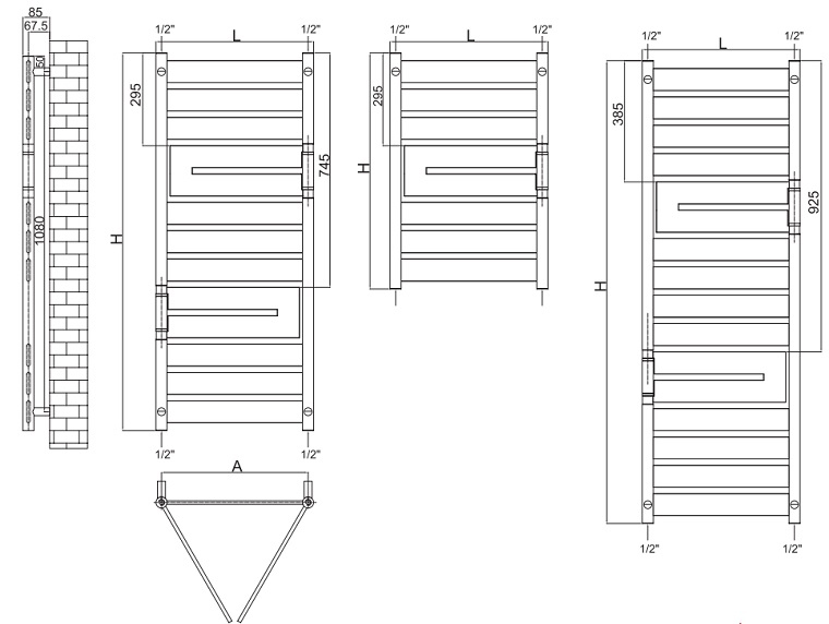 Calorifer decorativ Radox Apollo Flexi - dimensiuni