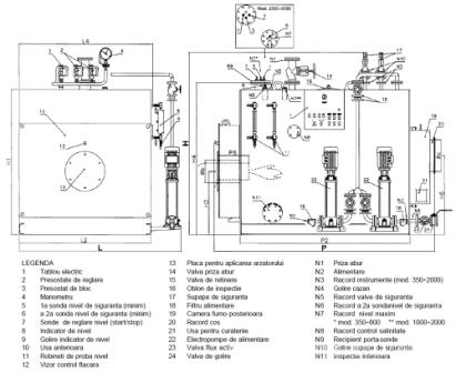 • accesorii de reglare si siguranta: regulator automatic de nivel, sonde de siguranta, presostat de limita, presostat de siguranta, supape de siguranta;