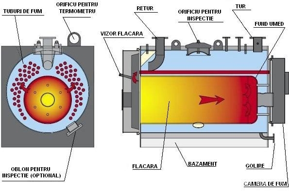 • camera de ardere are dimensiuni mari şi este potrivită pentru folosirea de combustibil lichid şi gazos.