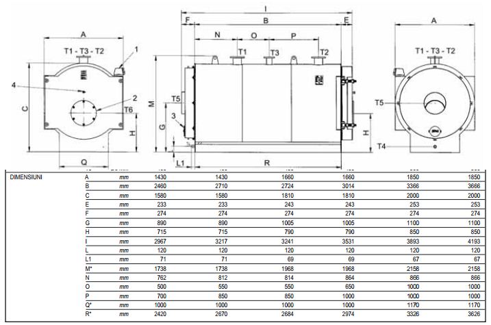 Dimensiuni cazan din otel cu flacara intoarsa in focar Ferroli Prextherm RSW
