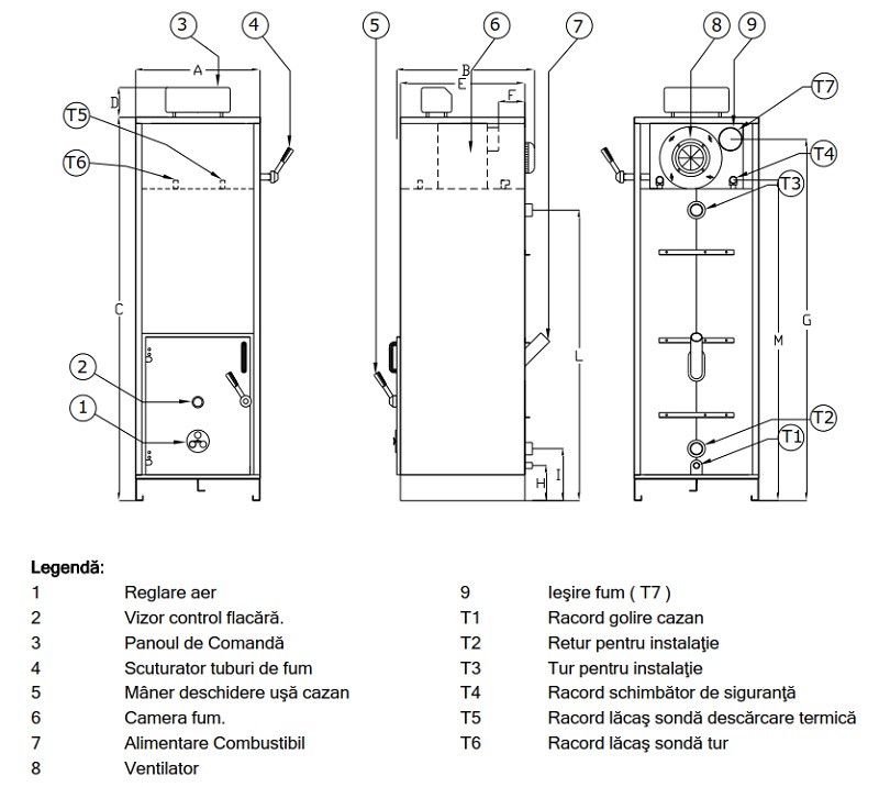 Cazan din otel cu functionare pe boabe de porumb, biomase granulare Step GranviaM - dimensiuni
