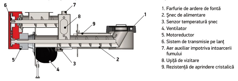 Arzatorul are o constructie speciala, oferind protectie impotriva aprinderii silozului. Combustibilul este transportat cu un snec, angrenat de un motoreductor.