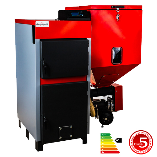 - Cazan policombustibil: functionare automata cu pellet-biomasa, incarcare manuala lemn