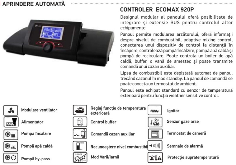 Cazanul este echipat cu panou de comanda digital, cu interfata grafica usor de utilizat, care poate comanda pompa de circulatie si pompa de boiler apa calda.