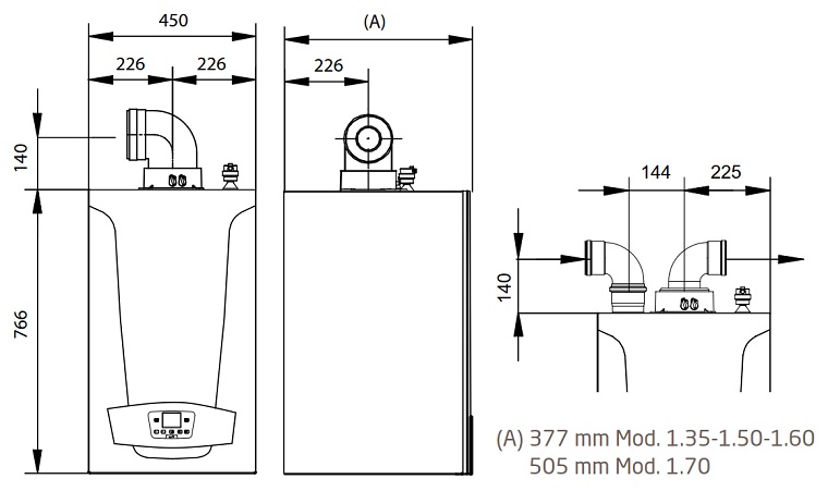 Dimensiuni Centrala termica in condensare Baxi Luna Duo-Tec MP+ 1.35 34 kW numai incalzire