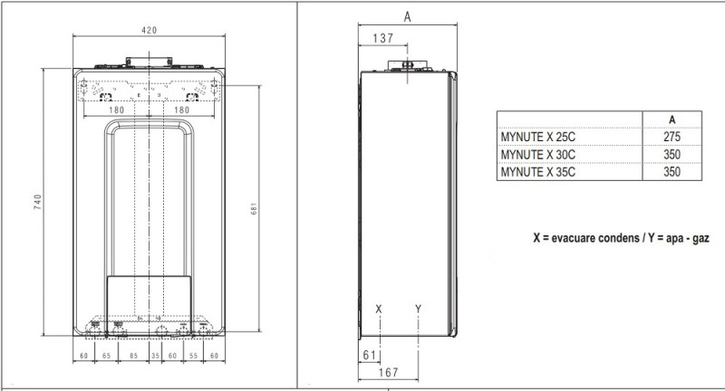 Dimensiuni Centrala termica in condensare Beretta Mynute X