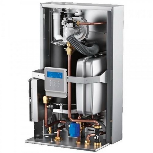 - Schimbator in condensatie elicoidal, din Inox, permite recuperarea unei bune parti din caldura gazelor arse, reducand pierderile de pe cos si o buna parte din caldura latenta rezultata din condensarea vaporilor de apa prezenti in gazele arse.