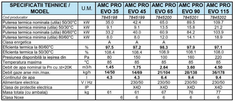 - Eficienta energetica foarte buna – economii reale la consumul de gaz datorita tehnologiei de condensare si modulatiei continue.