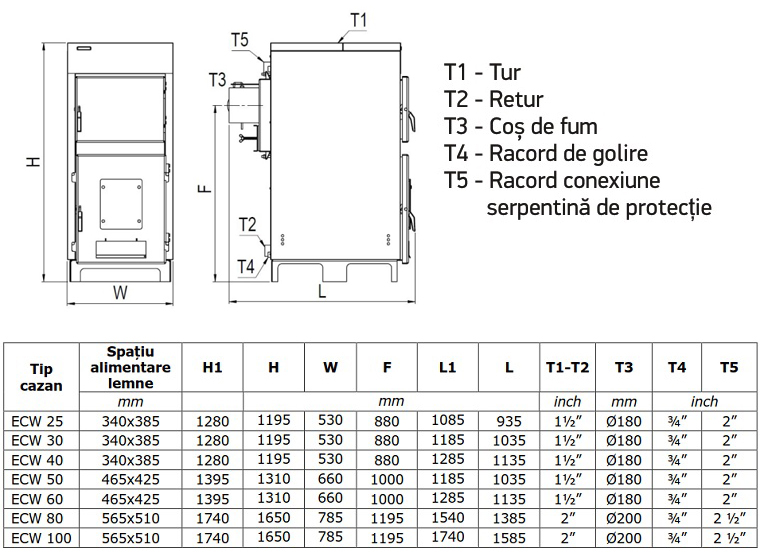Dimensiuni Thermostahl ECOWOOD STANDARD