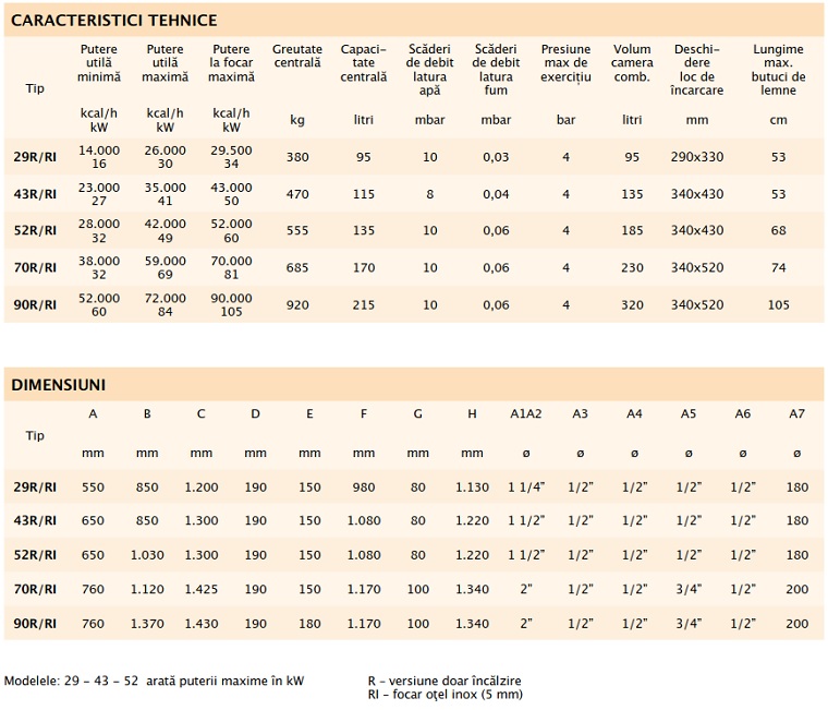 • Posibilitatea alimentarii cu lemne de dimensiuni mari;