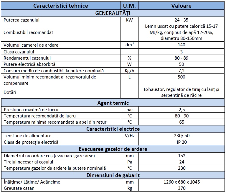 Puteri intre 14 – 150 kW, tipuri de combustibil: lemn, carbune, peleti, bricheti (puteri si combustibil in functie de modelul cazanului);