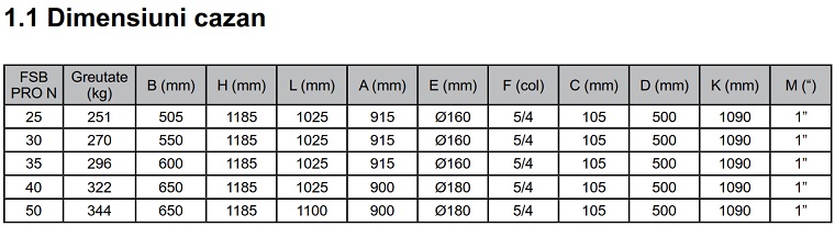 Dimensiuni Centrala termica pe lemne Ferroli FSB PRO N 30 - 30 kW