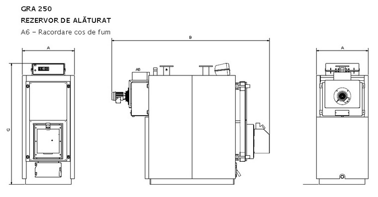 Dimensiuni Centrala termica pe peleti ARCA GRANOLA AUTOMATIC GRA 250 RO