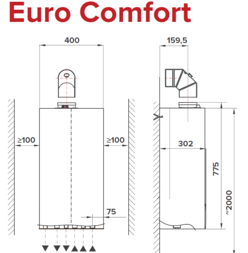 - Racordare la cosul de fum Concentrica Ø80/Ø125 mm, Ø60/Ø100 mm sau doua simple Ø80 mm