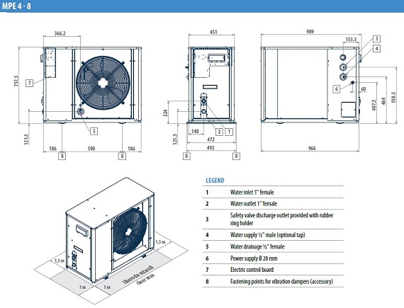 Dimensiuni Chiller aer-apa GALLETTI MPE 5M - 5.09 kW - racire