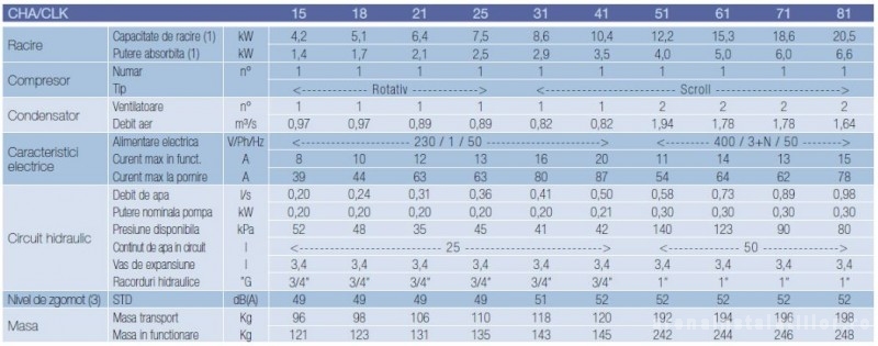 Caracteristici chillere Clint CHA/CLK 18 - 5,1 kW – racire