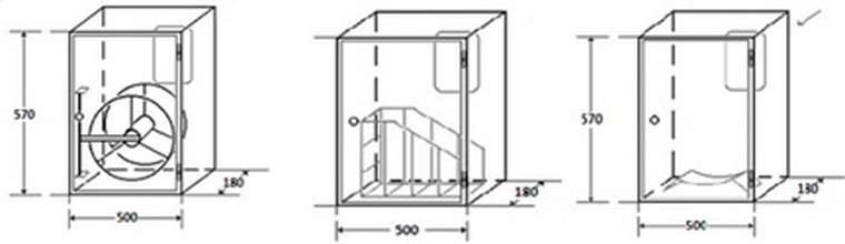 Dimensiuni Cutie hidrant AURA LT C52 - 570x500x180 R cu usa cu sticla - rosie - complet echipata