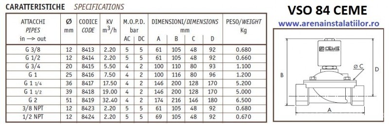 Date tehnice Electrovalva de apa normal inchis CEME VSO8417 (1 1/4)