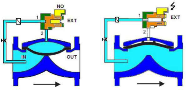 Cand s-a atins nivelul minim in rezervor vana se deschide pentru a reumple complet