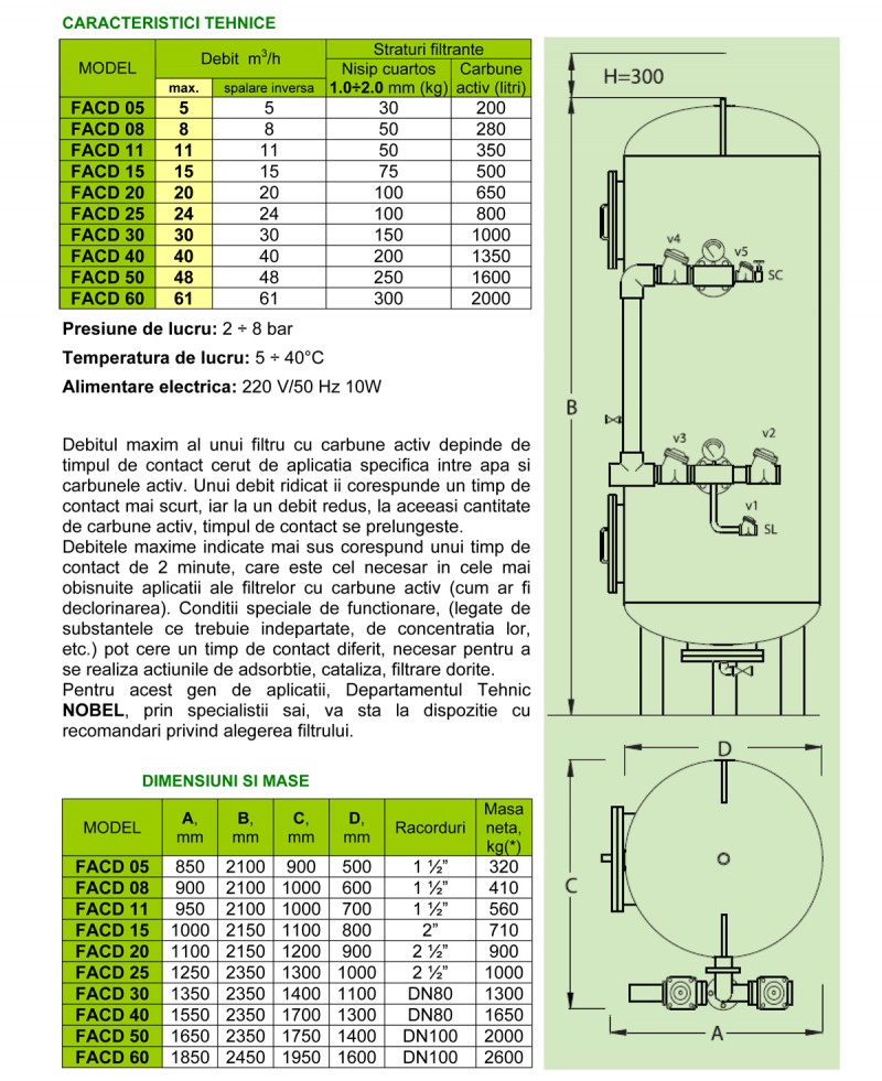 Filtru automat cu carbune activ NOBEL FACD/D - date tehnice si dimensiuni