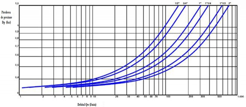 Filtru cu autocuratire si 2 manometre MALGORANI - NEPTUNE - diagrama de debit:
