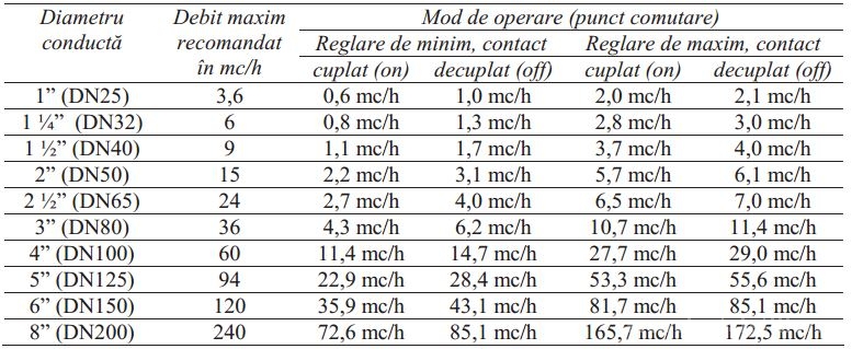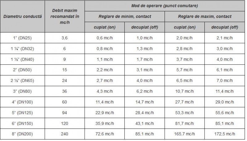 Diametru conductă: 1”…8” (DN25….DN200mm)