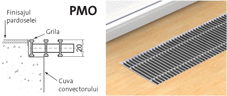Grila de mascare pentru convectori cu montaj in pardoseala Purmo Aquilo .