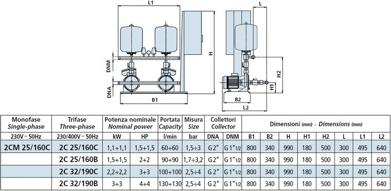 Grup de pompare SPERONI - PRESS-SYSTEM 2C 25/160B