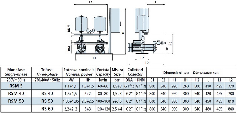 Grup de pompare SPERONI - PRESS-SYSTEM RSM 50