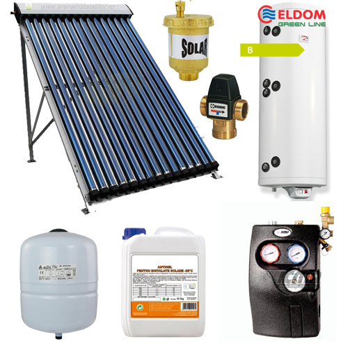 Componente Pachet panou solar Helis cu 15 tuburi vidate si boiler 150 litri cu 2 serpentine pentru 2-3 persoane