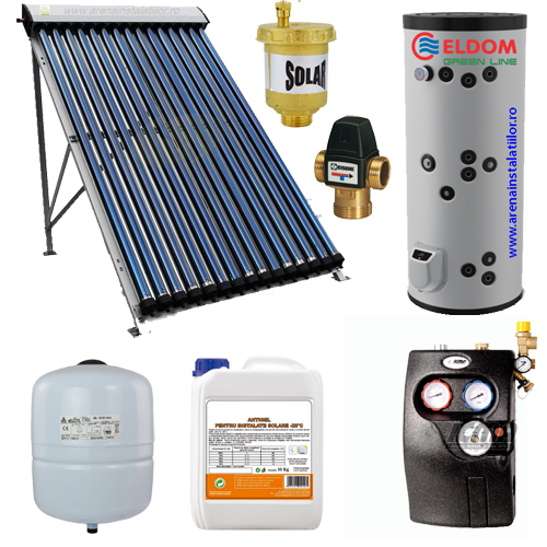 Detalii Pachet panou solar Helis cu 30 tuburi vidate si boiler 300 litri cu 2 serpentine pentru 4-6 persoane
