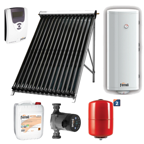 Pachet solar cu 20 tuburi vidate Ferroli Ecotube New 20 si boiler ECOUNIT DW 150