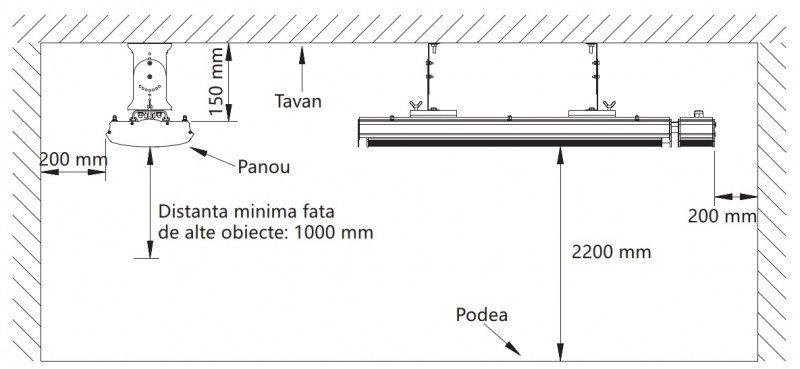 Montajul de panouri radiante cu infrarosu marca EVOCLIMA este foarte simplu, fixarea se face doar cu patru dibluri in tavan sau perete, iar conectarea electrica se realizeaza la reteaua de 230 V, circuit separat (la o doza sau priza) Suportii de prindere se livreaza gratuit.