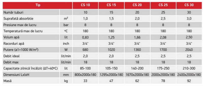 Panou solar cu tuburi vidate HEAT PIPE THERMOSTAHL VACUUM CS - date tehnice